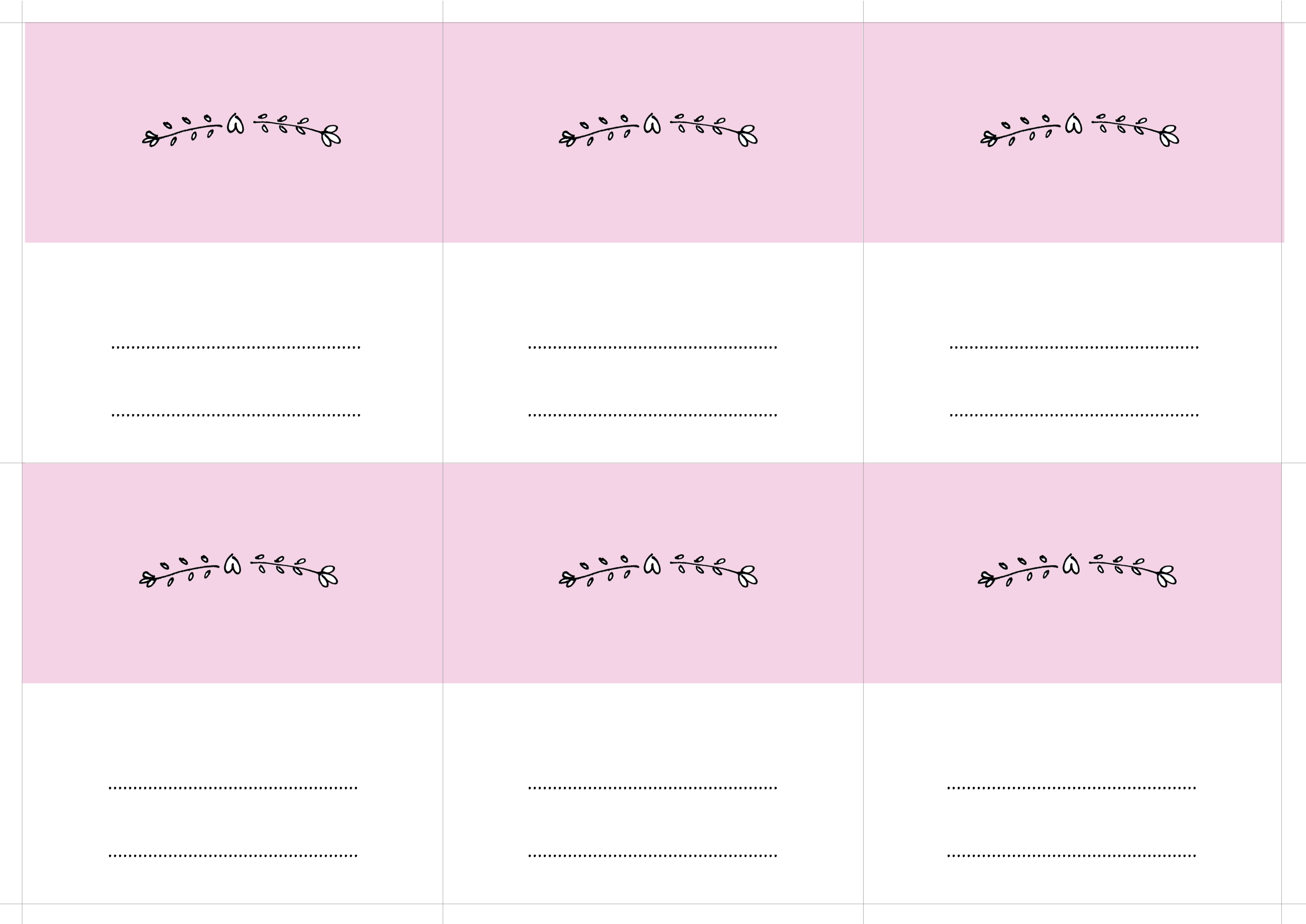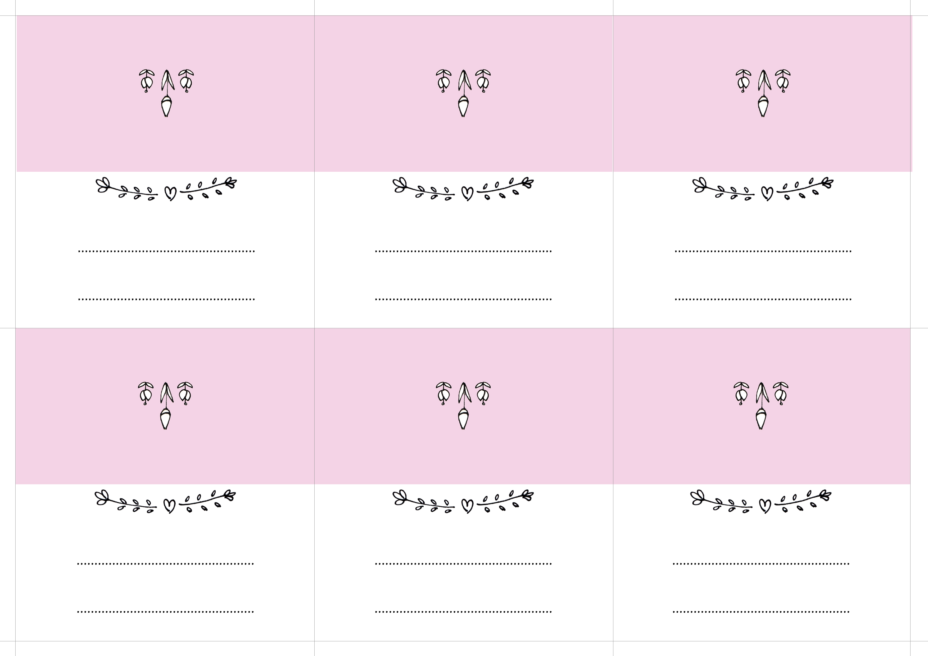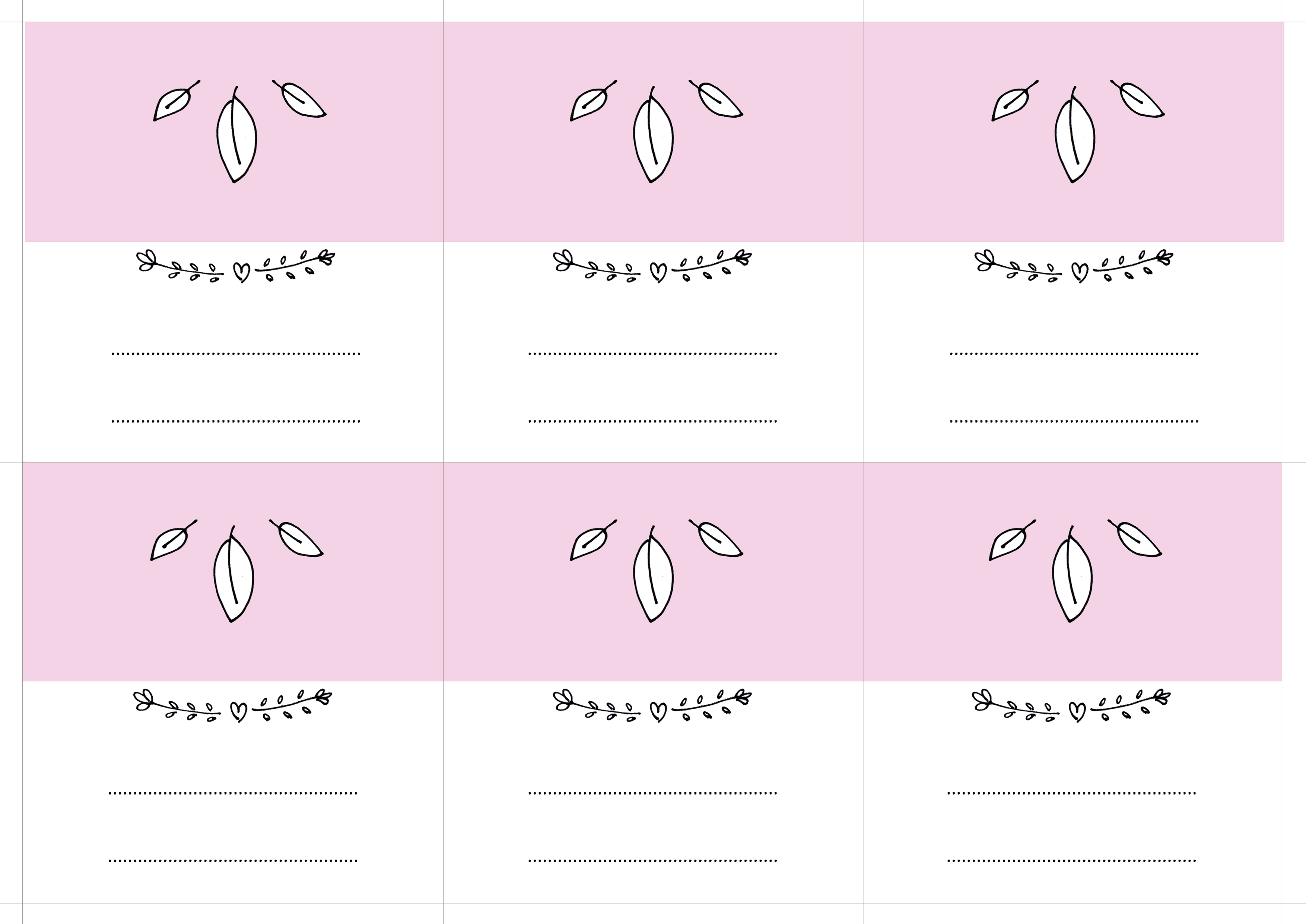 Pierwszy wzór to winietki z imieniem i nazwiskiem z przodu i różowym tyłem. Nie ma na nich żadnych tulipanów, a jedyna grafika to ozdobne gałązki z serduszkiem.