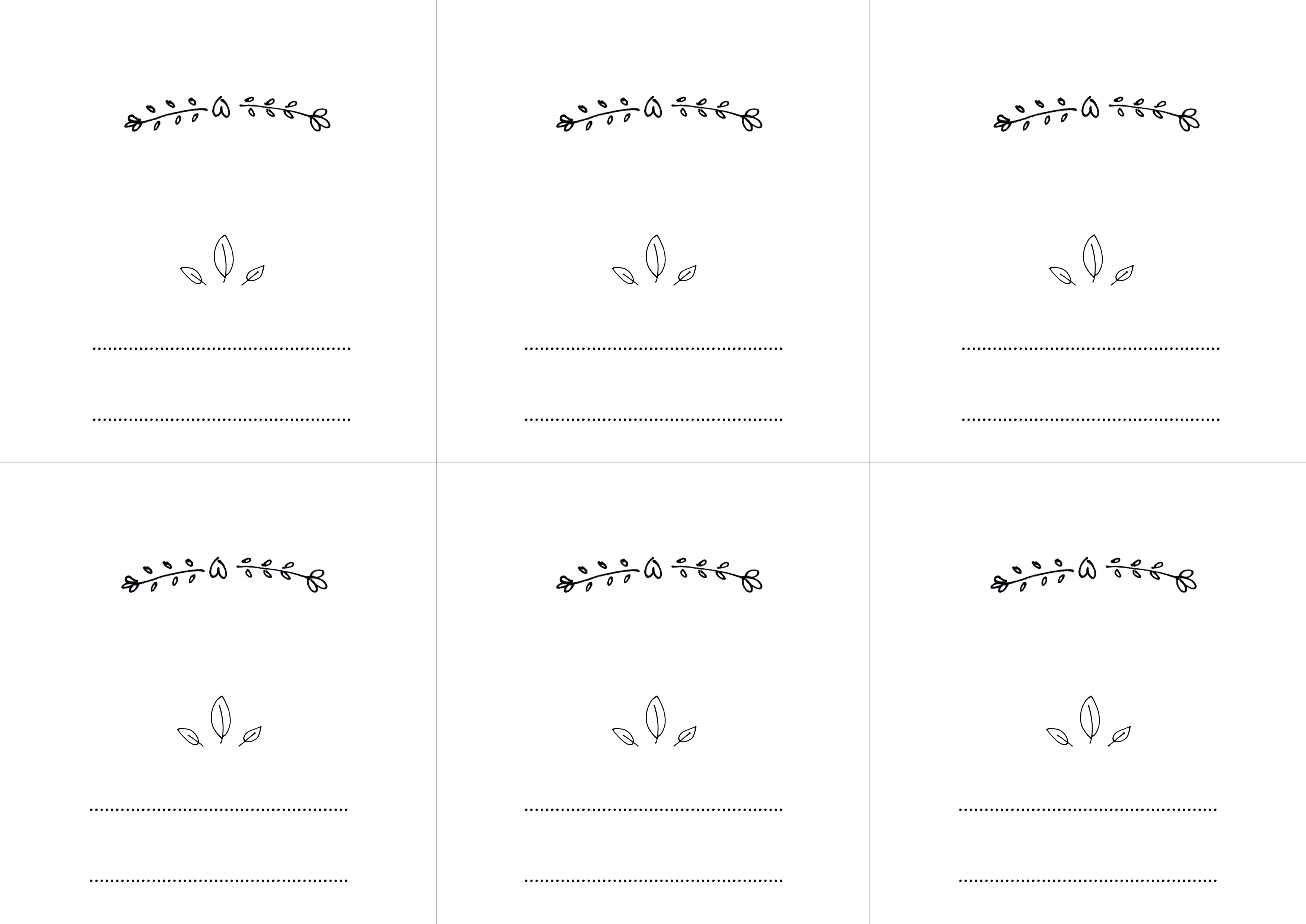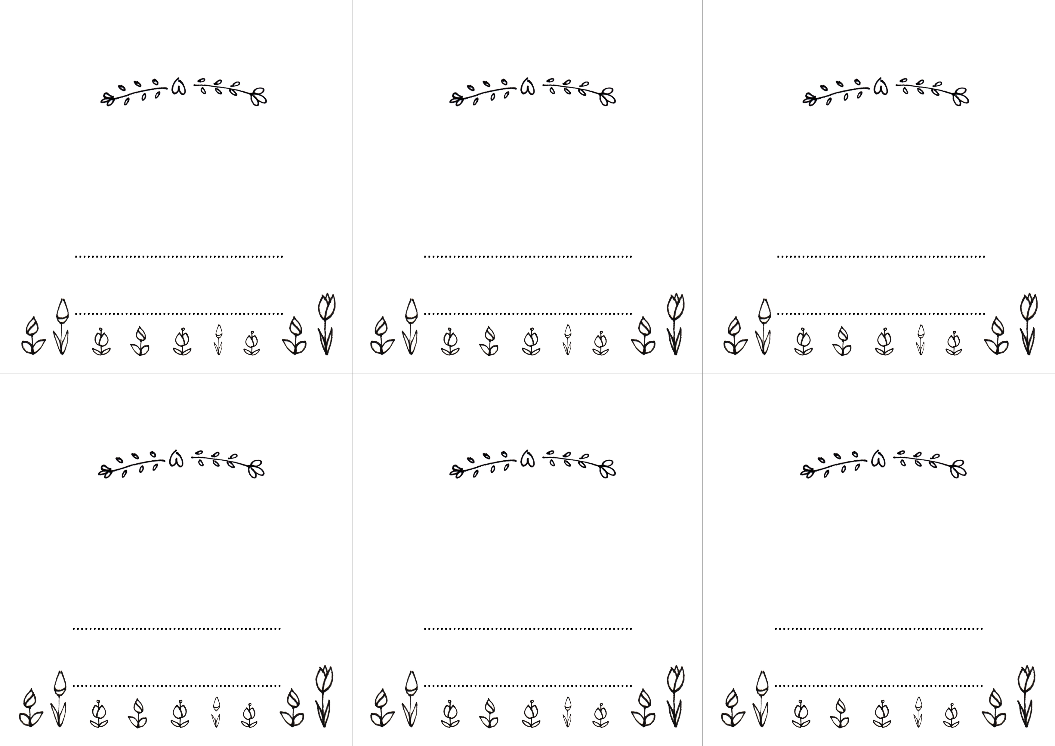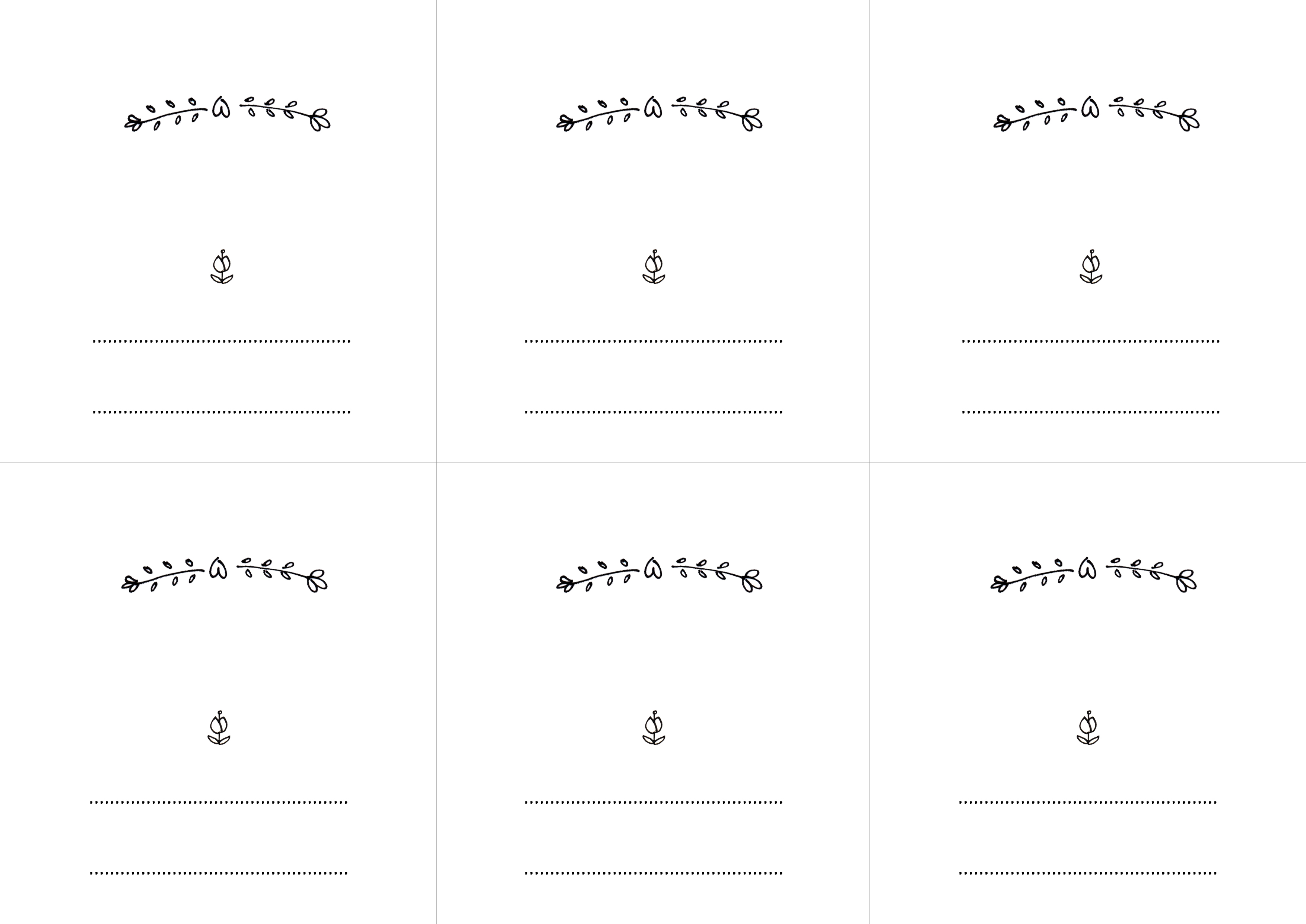 Pierwszy wzór to winietki z imieniem i nazwiskiem z przodu i różowym tyłem. Nie ma na nich żadnych tulipanów, a jedyna grafika to ozdobne gałązki z serduszkiem.