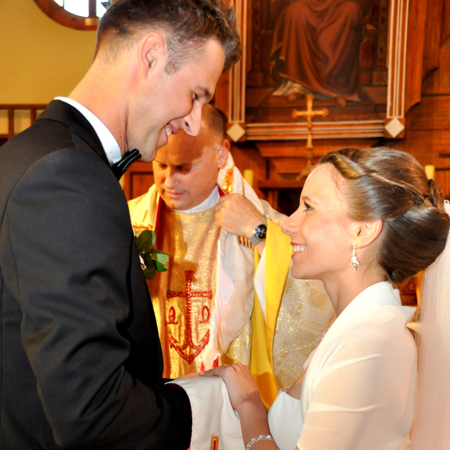 Nie mamy takiego ogólnego życzenia. Każdej parze składamy życzenia indywidualne. Widzimy ich pragnienia, cechy charakteru i dostosowujemy życzenia, aby były wyjątkowe, niepowtarzalne. Czasami to proste zdanie, ale na pewno bliskie młodej parze. Każdej młodej parze trzeba życzyć prosto z serca, szczerze. A czego? Tak ogólnie – dobrej pamięci. Tego, aby nie zapominali o przysiędze, jaką właśnie złożyli. I tego, aby nie starali się być idealnym małżeństwem, bo to tworzy sztuczność i przykrywa część problemów, które trzeba przepracować. Nie ma nieskazitelnych małżeństw, mogą być tylko szczęśliwe.
