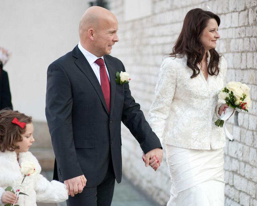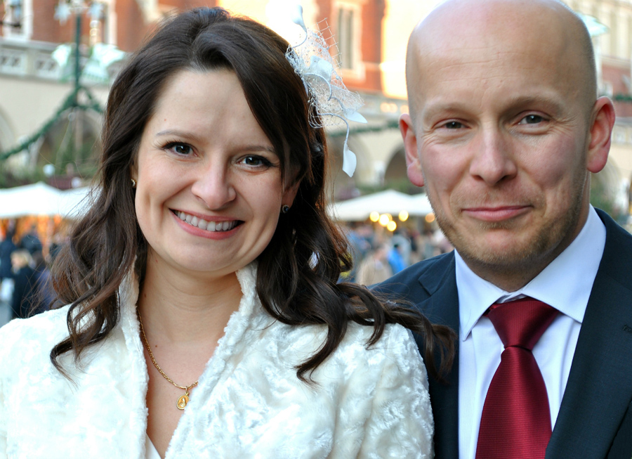 Parą jesteśmy od ponad 6 lat, natomiast ślub wzięliśmy w końcu grudnia 2013 roku. Miałam wtedy 36 lat, a mój mąż 37. Decyzja o ślubie była poprzedzona dość długim etapem „docierania się” i analizowania wszystkich za i przeciw. W naszej relacji tych argumentów mogło być więcej niż u innych narzeczonych, ponieważ od samego początku nasza rodzina liczyła trzy osoby. Miałam to szczęście, że mój mąż od pierwszych dni naszego związku nawiązał bardzo dobrą relację z moją córką, którą wcześniej wychowywałam zupełnie samodzielnie. Kiedy się poznaliśmy Julka miała ponad dwa lata. Pół roku po naszym ślubie mąż formalnie przysposobił moje dziecko, teraz nosimy wspólne nazwisko i jesteśmy bardzo mocno zintegrowaną rodziną.